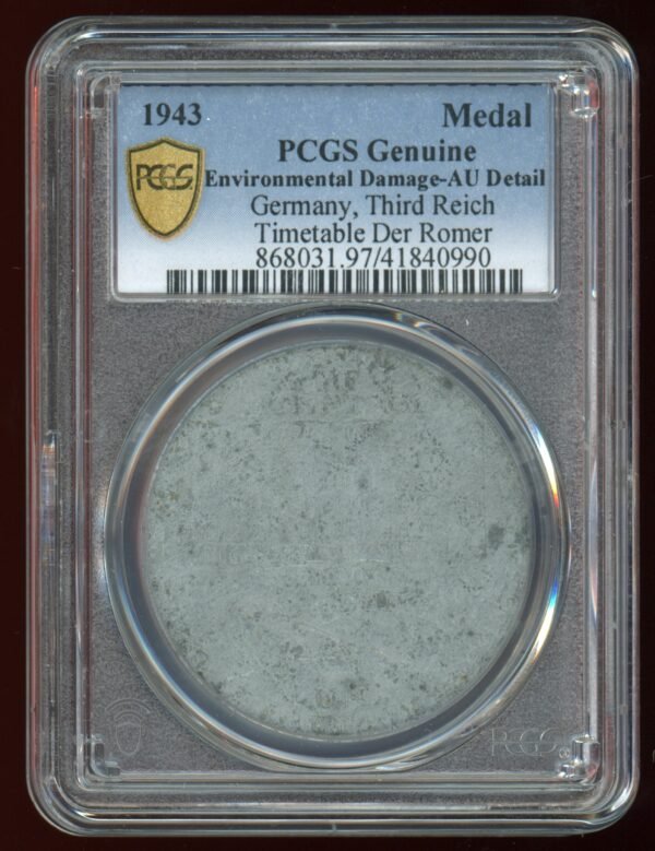 1943 Timetable Der Romer Medal, PCGS Genuine AU Details – Environmental Damage.